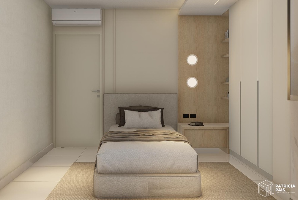 Cada vista transmite una sensación de amplitud, iluminación cálida, distribuciónb armoniosa consolida un dormitorio diseñado para el descanso pleno.