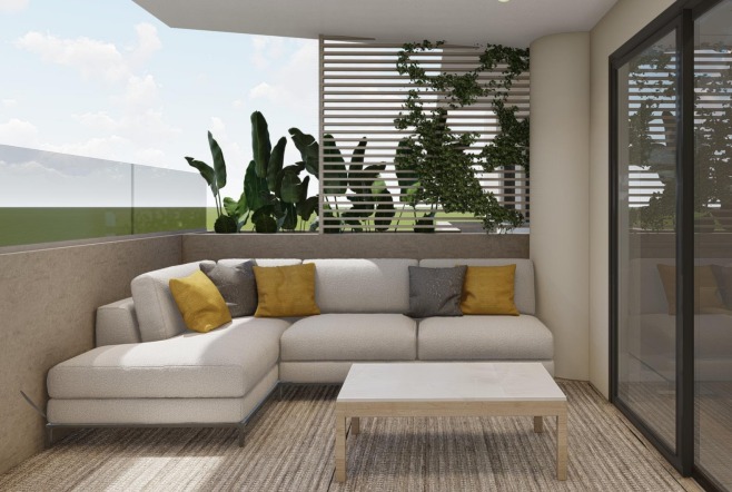 Un punto clave del apartamento, un ambiente fresco para compartir, relajarse o disfrutar de una vista privilegiada, se considera una extención natural del área social, su propuesta incorpora iluminación ambiental, mobiliario y vegetación que enmarca el espacio sin sobrecargarlo