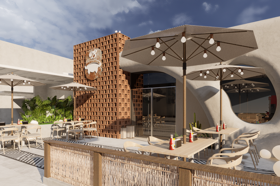 El proyecto integra dos terrazas que amplían la experiencia gastronómica hacia el exterior y fomentan la conexión con el entorno. En las fachadas, el muro calado destaca como un elemento clave del diseño, aportando sombra, ventilación natural y ritmo visual. Los detalles de inspiración mediterránea refuerzan la identidad del restaurante y crean una propuesta arquitectónica cálida y bien integrada al contexto urbano.