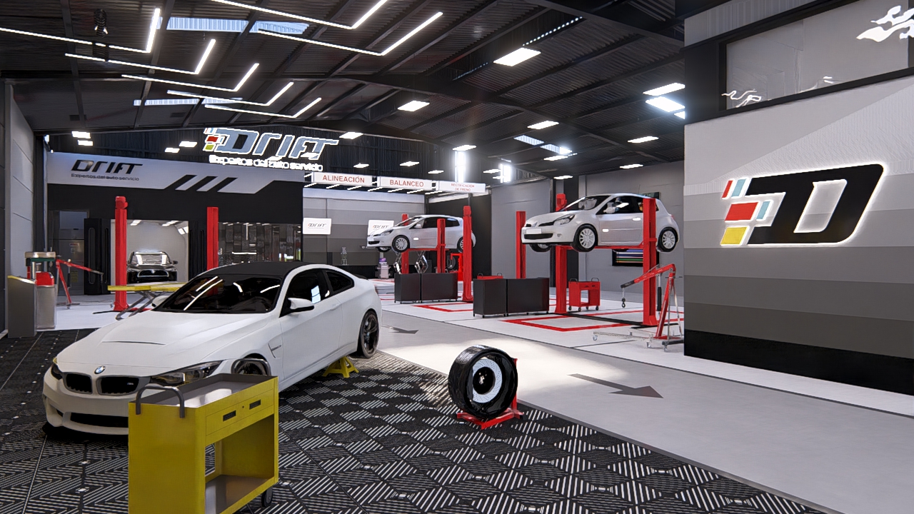 DRIFT Taller Automotriz es un centro especializado en detailing, diseñado bajo una estética industrial contemporánea que combina eficiencia operativa e identidad de marca.