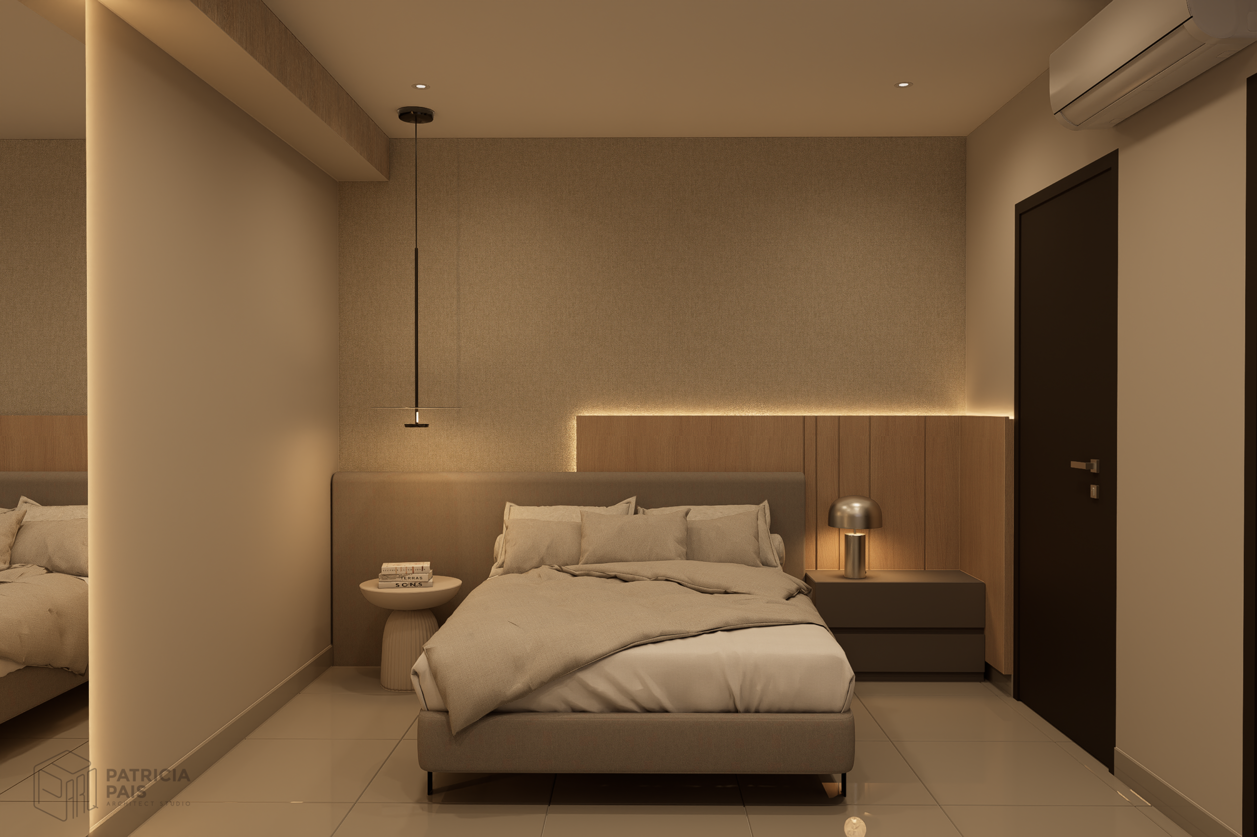 La suite principal es un ejercicio de sobriedad y descanso. Con un diseño que prioriza las texturas suaves y una iluminación indirecta, el espacio ofrece un ambiente íntimo y relajante.