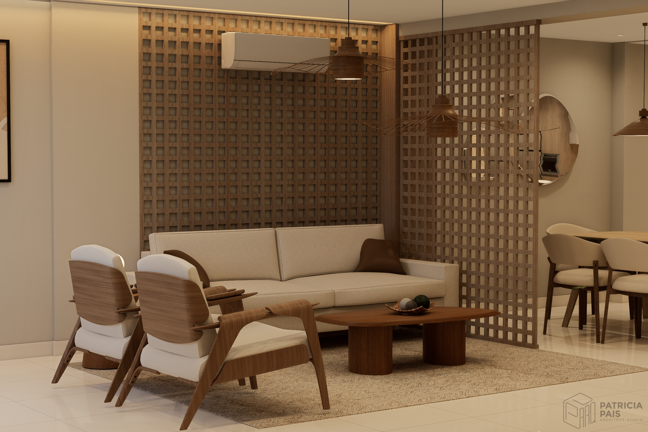 Este espacio ha sido diseñado para ofrecer una atmósfera de serenidad y distinción, fundamentada en un estudio meticuloso de la materialidad. La propuesta integra revestimientos de pared que aportan una dimensión táctil y visual única, sirviendo como telón de fondo para una selección de mobiliario que equilibra la sobriedad con el máximo confort.