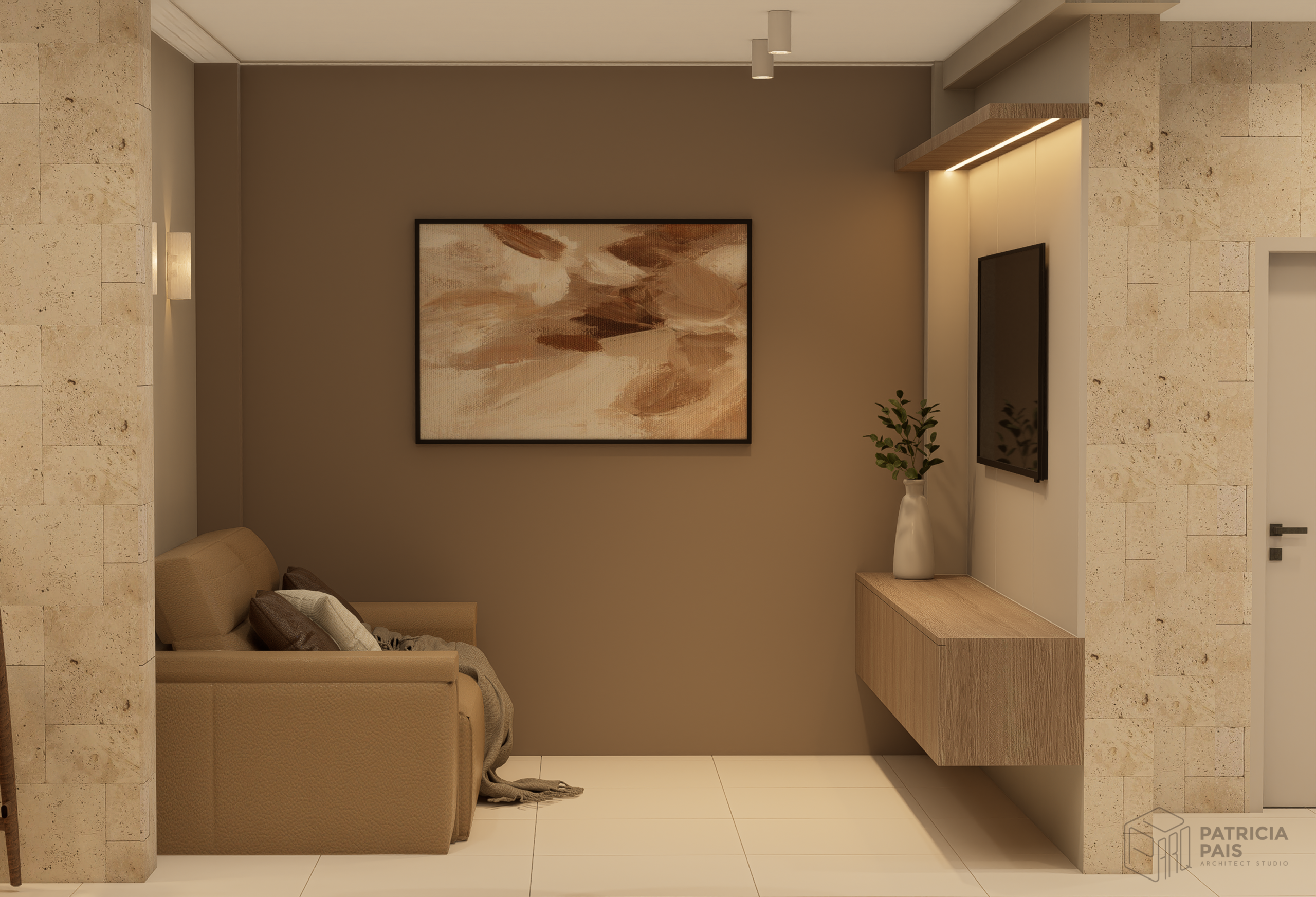 Diseñada específicamente para el entretenimiento, la sala de TV optimiza la acústica y la visión mediante un diseño de mobiliario a medida. La iluminación es cuidadosamente controlada para crear una experiencia cinematográfica en casa, sin sacrificar la elegancia y la integración con el resto del área social.